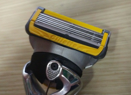 사용한지 한달된 질레트 면도기 면도날의 상세컷.