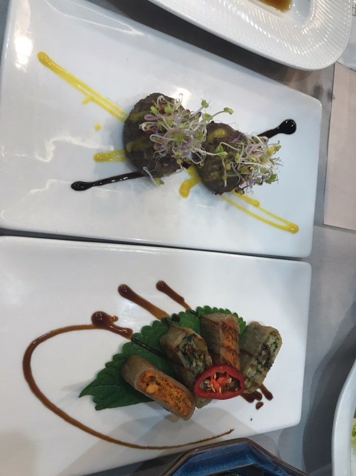 각종 색의 소스로 예쁘게 플레이팅 되어 있어서 먹는 재미외에 보는 재미도 있었어요