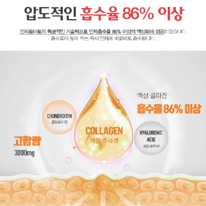 긴자토마토 콜라겐은 흡수율 86%이상으로