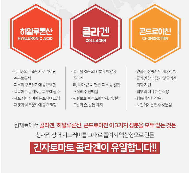 콜라겐과 콘드로이친, 히알루론산 3가지 성분을 한재료에서 모두 추출하여