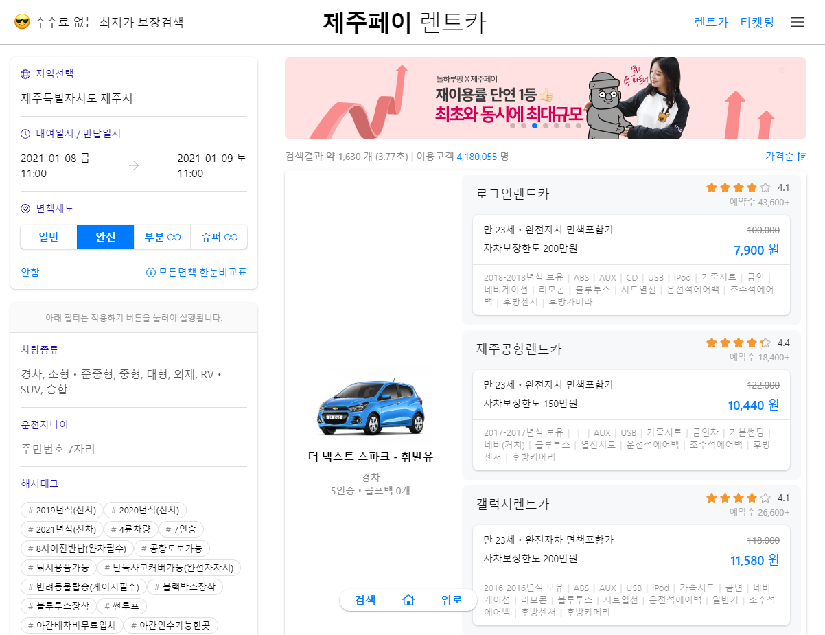 최고의 제주렌트카 비교 사이트로 급부상중입니다.