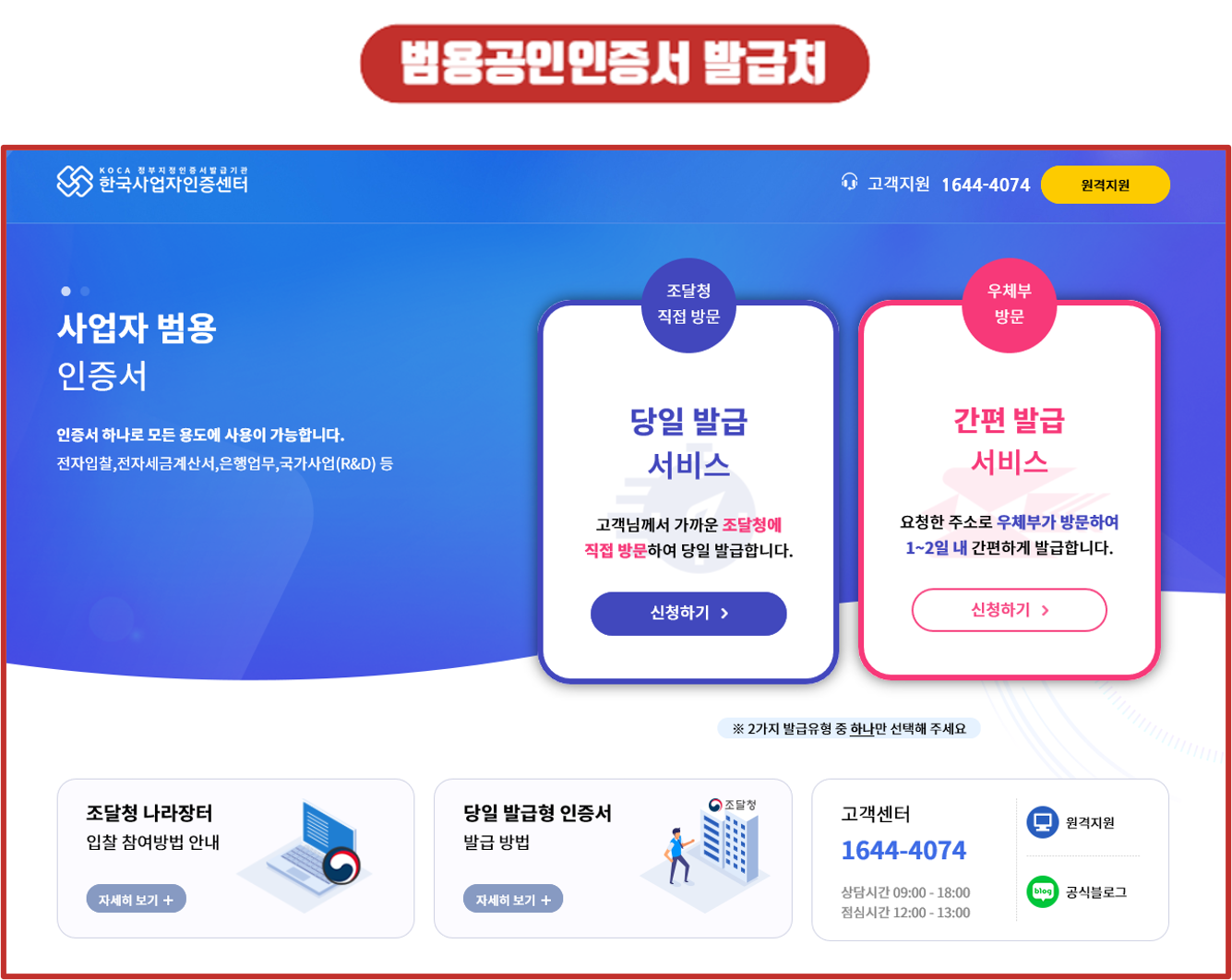 당일 발급은 가까운 조달청에 직접 방문하여 서류를 제출하고 당일에 발급하는 것이고,