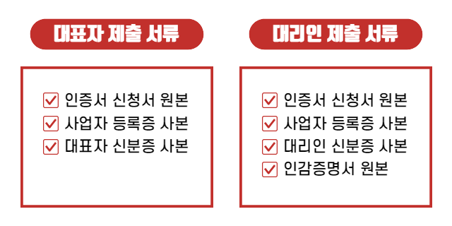 대표자가 서류 제출하는 경우, 대리인이 서류 제출하는