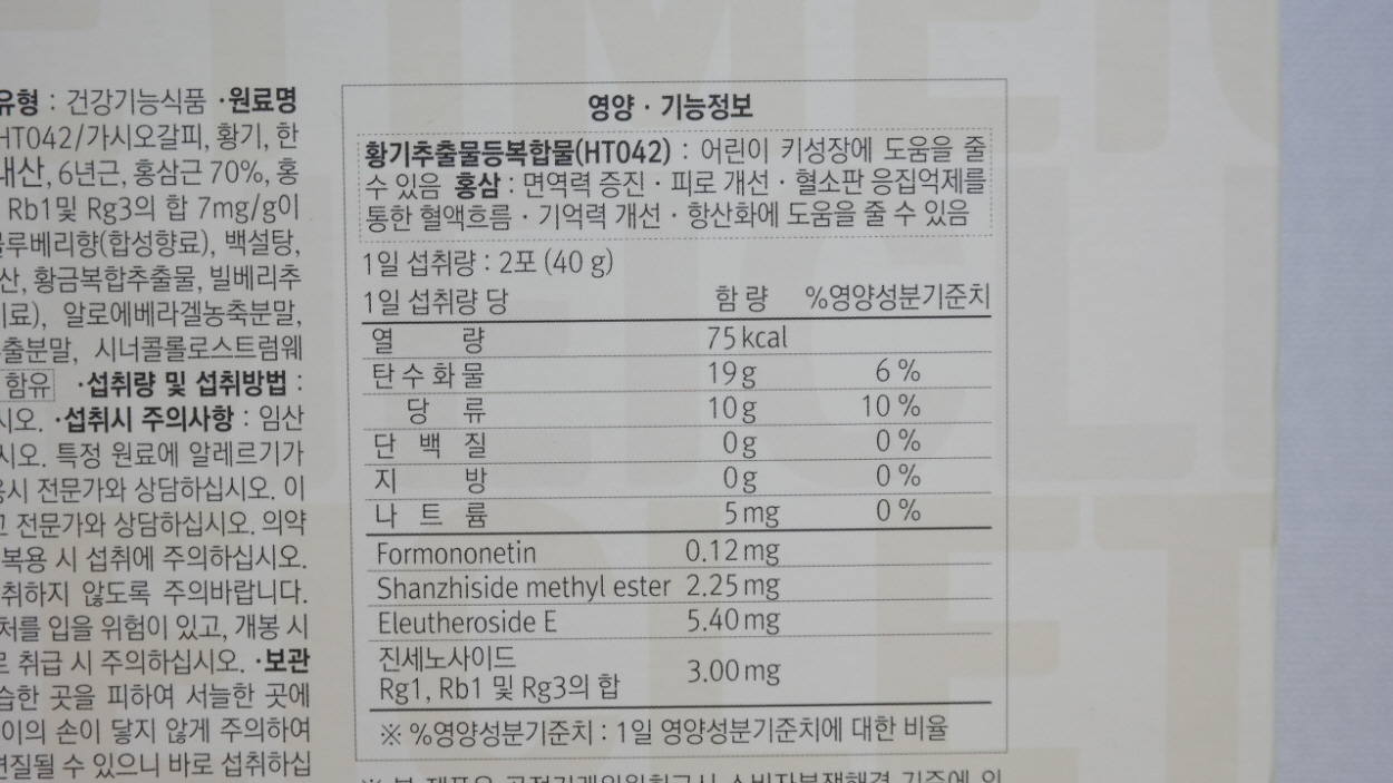 여기에 6년근 홍삼추출물성분도 들어가 있어서
