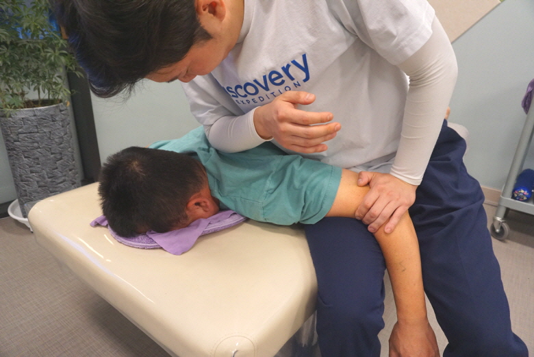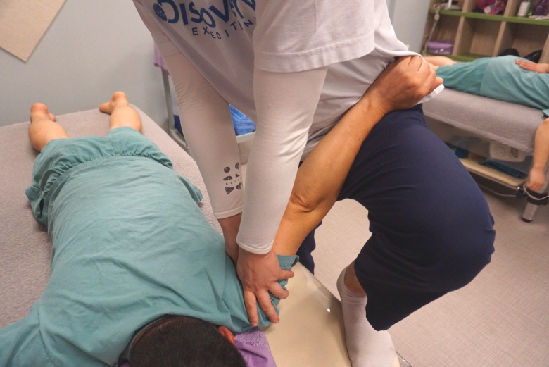자세가 현재 어떤지 보고 나서 개인별 맞춤 척추교정에 들어간다.