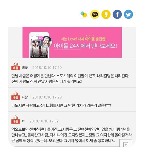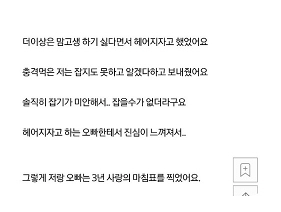나름 두사람의 연애시작에서부터 과정, 이별, 그후의 일들까지 현실성있게 작성된 글이어서 많은 사람들이 공감하고 반응도 좋았던것으로 보여요