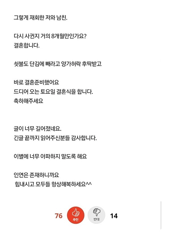 결론적으로 결혼했다고하니 축하받을 일이네요.^^
