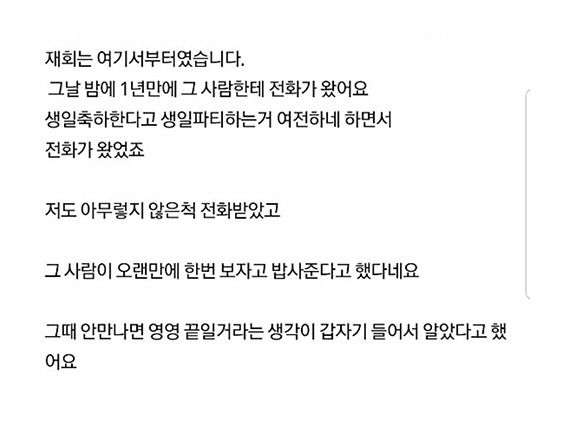 대부분, 아니 모두 다 재회성공 후기라면서 올려놓은 글들은 문자내용이나
